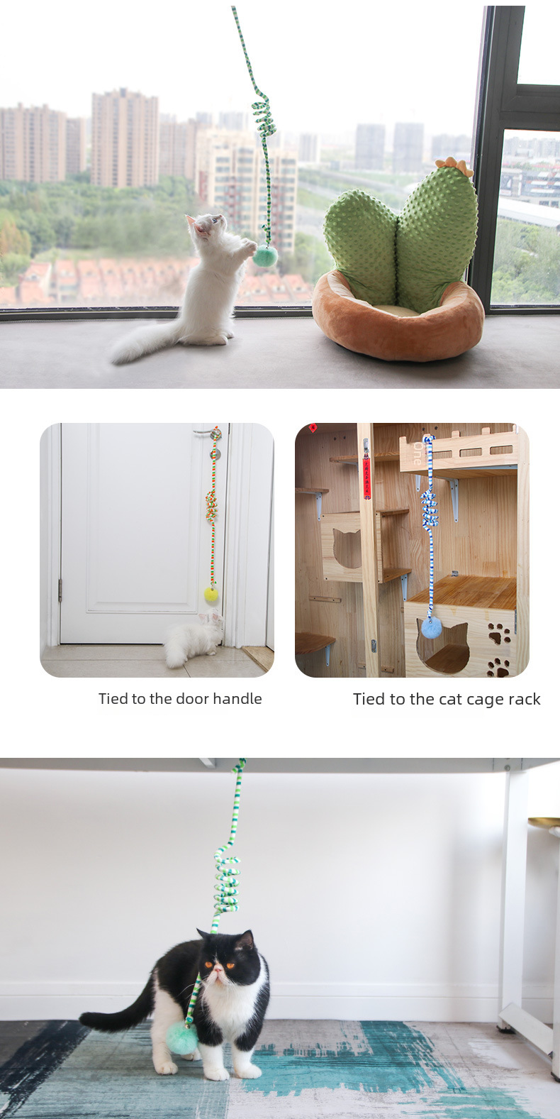 - Swinging Action: Attaches easily to any door with a strong suction cup, allowing the toy to swing and bounce, enticing your cat to jump and play.